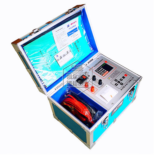 KE2540E型變壓器直流電阻快速測試儀 功能特點 1、采用高速16位A/D轉換器,測量數(shù)據(jù)穩(wěn)定,重復性好。 2、自動程控電流源技術,既可手動選擇典型值輸出電流也可由內部微控制器自動控制輸出電流,電流源內部共設2000個電流檔位,在自動狀態(tài)下,由內部微控制器根據(jù)被測電阻自動控制,從而達到比較寬的測量范圍和最佳的測量狀態(tài)。 3、實時動態(tài)顯示,響應速度快,可在測量狀態(tài)直接轉換分接開關,儀器會自動提示,新的電阻值很快就會顯示出來,無須重新啟動。 4、高度智能化設計,功能設置巧妙先進,可自動判斷測試線虛接、斷線等故障。 5、保護功能完善,能可靠保護反電勢對儀器的沖擊,具有自動放電指示功能。 6、可顯示測量電流和測量時間。 7、智能化功率管理技術,可有效減輕儀器內部發(fā)熱。 8、可儲存250次測量數(shù)據(jù),掉電不丟失。 9、全部漢字菜單及操作提示,直觀方便。 10、內置微型打印機,可打印測量結果和內存記錄。 11、不掉電日歷,時鐘功能。